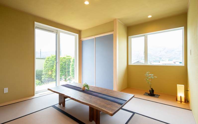 こちらも漆喰と同じ塗り壁ですが、火山灰・白洲(シラス)の珪酸質成分を主成分として、100%天然素材のみを使って開発された内装用仕上げ材です。吸放湿性に優れ、カビや結露が発生しにくく、アトピーや喘息などのアレルギー症状で悩んでいる方にもうれしい壁材です。シラス成分中の酸化チタンに光があたると化学反応が起こり、悪臭が消えたり有害物質が無害化される現象が起きる驚きの効果があります。実際に調湿・消臭効果が高いためトイレの内装によく使うほか、その落ち着いた見た目で和室にも使うことが多いです。